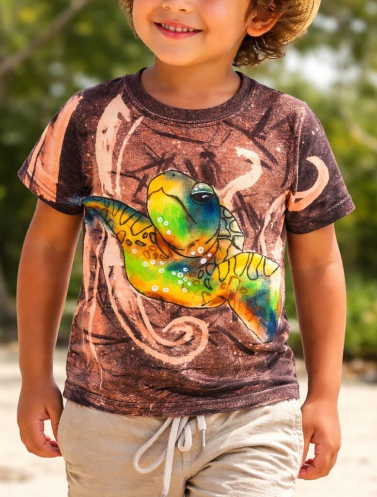 Turn inside out, wash in cold water, and air dry whenever possible. Avoid heavy heat directly on the artwork.